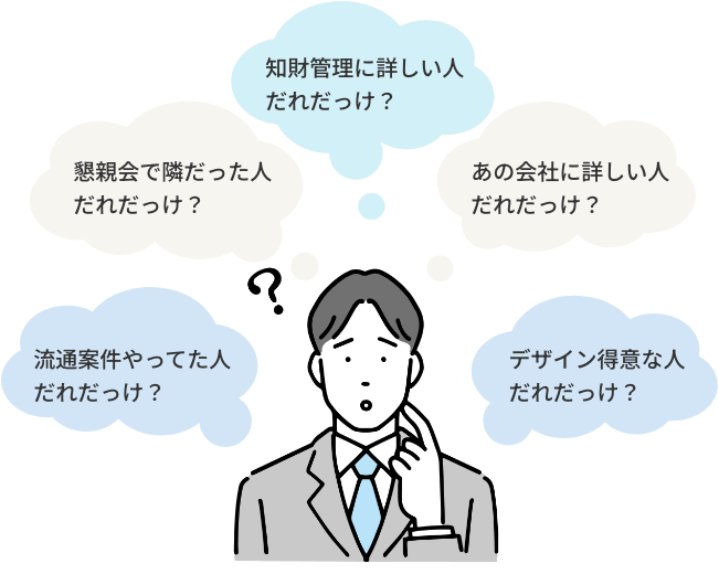 社内のどこかには、専門知識を持っている人や、アプローチしたい業界・企業にコネクションがある人がいるものの、いざという時に「だれだっけ?」みなさんも思い当たることがよくあるのではないでしょうか?